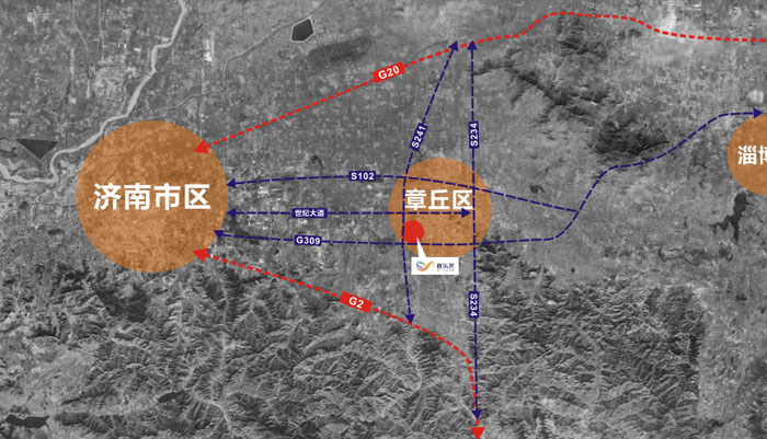 華僑城歡樂薈位于濟南市章丘區,地處章丘區繡源河風景區,項目為濟南市與淄博市連接中軸線位置,是聯通濟南市與淄博市的交通樞紐,項目處于G309(經十東路),繡源東街(工業六路)交匯處,項目西距濟南市區40公里(大明湖站),西距淄博市50公里(淄博市客運中心),距離濟南遙墻國際機場約45公里(約60分鐘車程)。