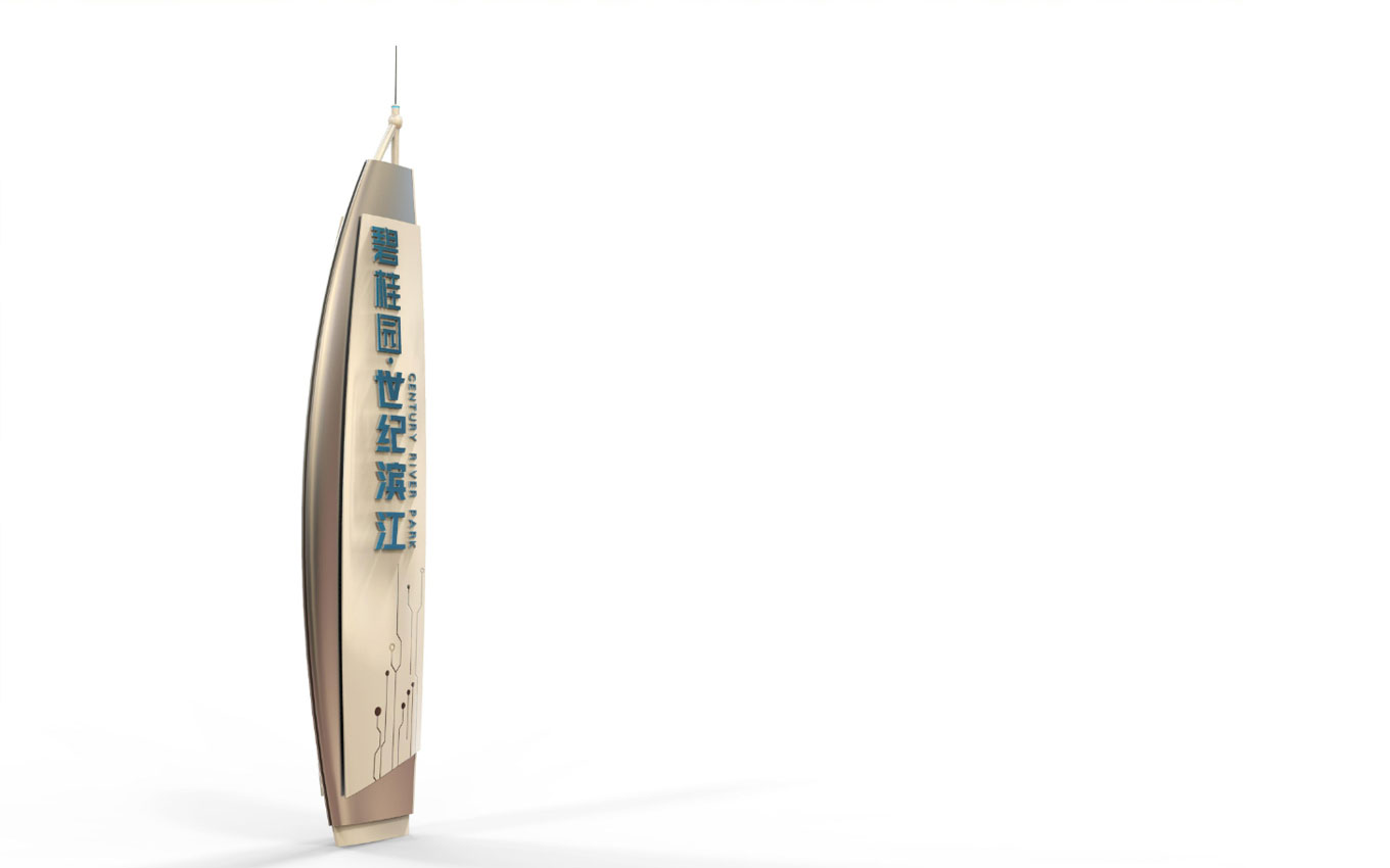 碧桂園·世紀(jì)濱江總占地約123畝,總建筑面積35萬㎡,世紀(jì)濱江標(biāo)識(shí)設(shè)計(jì)以“濱江生態(tài)·花園辦公”概念為藍(lán)本,打造灣區(qū)創(chuàng)新門戶,佛山首個(gè)濱江產(chǎn)融旗艦綜合體。地產(chǎn)標(biāo)識(shí)設(shè)計(jì)制作范圍涵蓋獨(dú)棟總部、濱江寫字樓、創(chuàng)變SOHO、活力街區(qū)、江畔美宅5大業(yè)態(tài)、打打造集“大企業(yè)展廳、智能科技體驗(yàn)中心、智能總裁駕駛艙、科技交流中心、創(chuàng)新科技服務(wù)中心、科技孵化加速中心”等功能于一體的企業(yè)科技創(chuàng)新會(huì)客廳,鑄造佛山科技創(chuàng)新的新名片,推動(dòng)佛山創(chuàng)新智造產(chǎn)業(yè)發(fā)展。標(biāo)識(shí)設(shè)計(jì)構(gòu)思以:濱江生態(tài)與科技結(jié)合,金屬質(zhì)感樹干造型+圍邊樹葉,指示內(nèi)容印于樹葉上,簡潔金屬流線型線條,結(jié)合濱水靈動(dòng)+科技硬朗質(zhì)感。