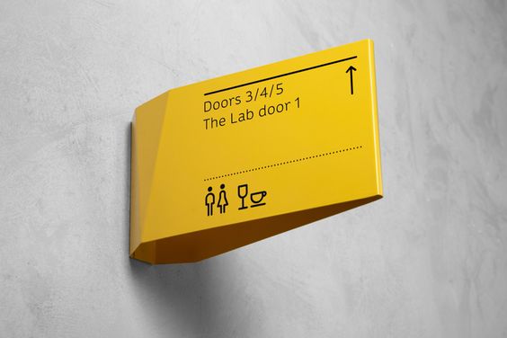 黃色三邊形的箭頭指引與衛(wèi)生間標識結合的標牌制與安裝。