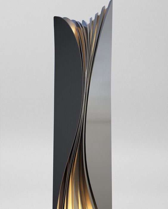 一片葉子的標識牌與金色及灰色的切面發(fā)光效果。