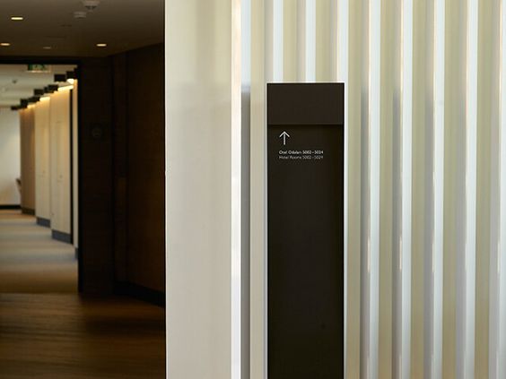 深圳綜合體電梯間中的分電梯指引標識設計及效果圖。