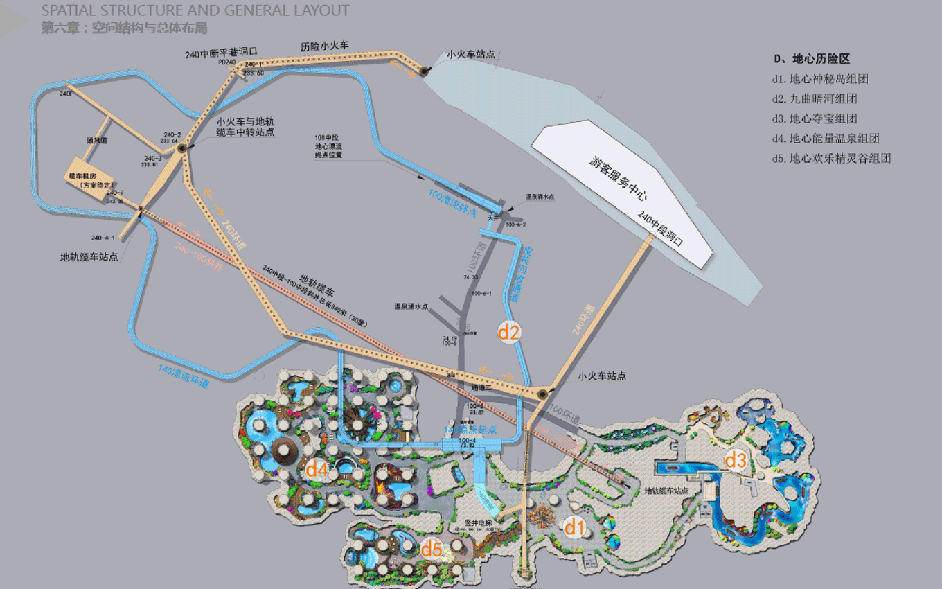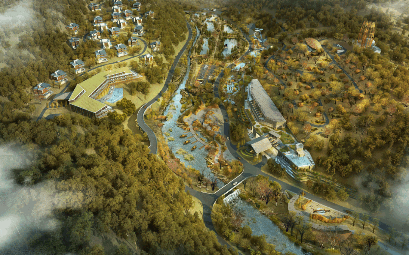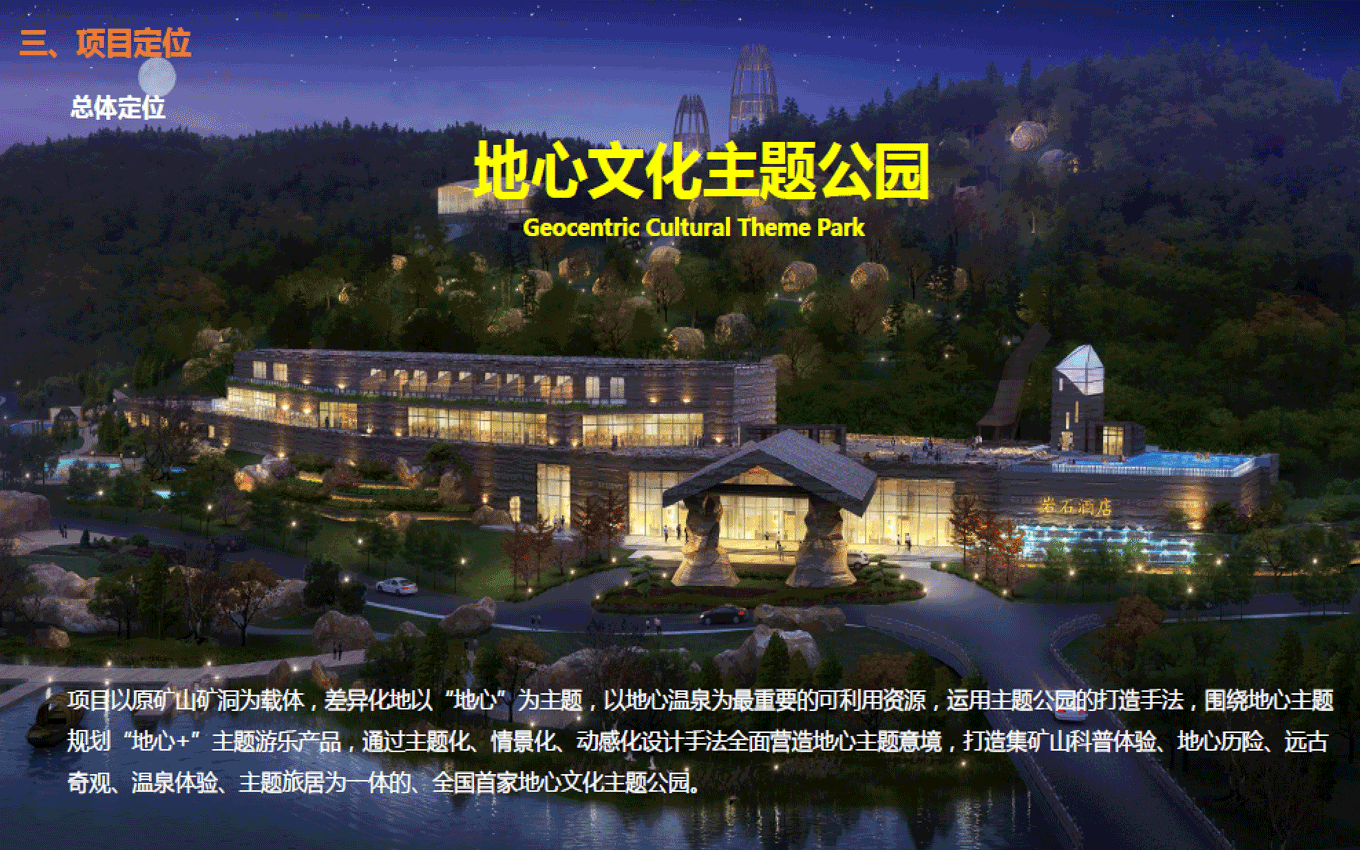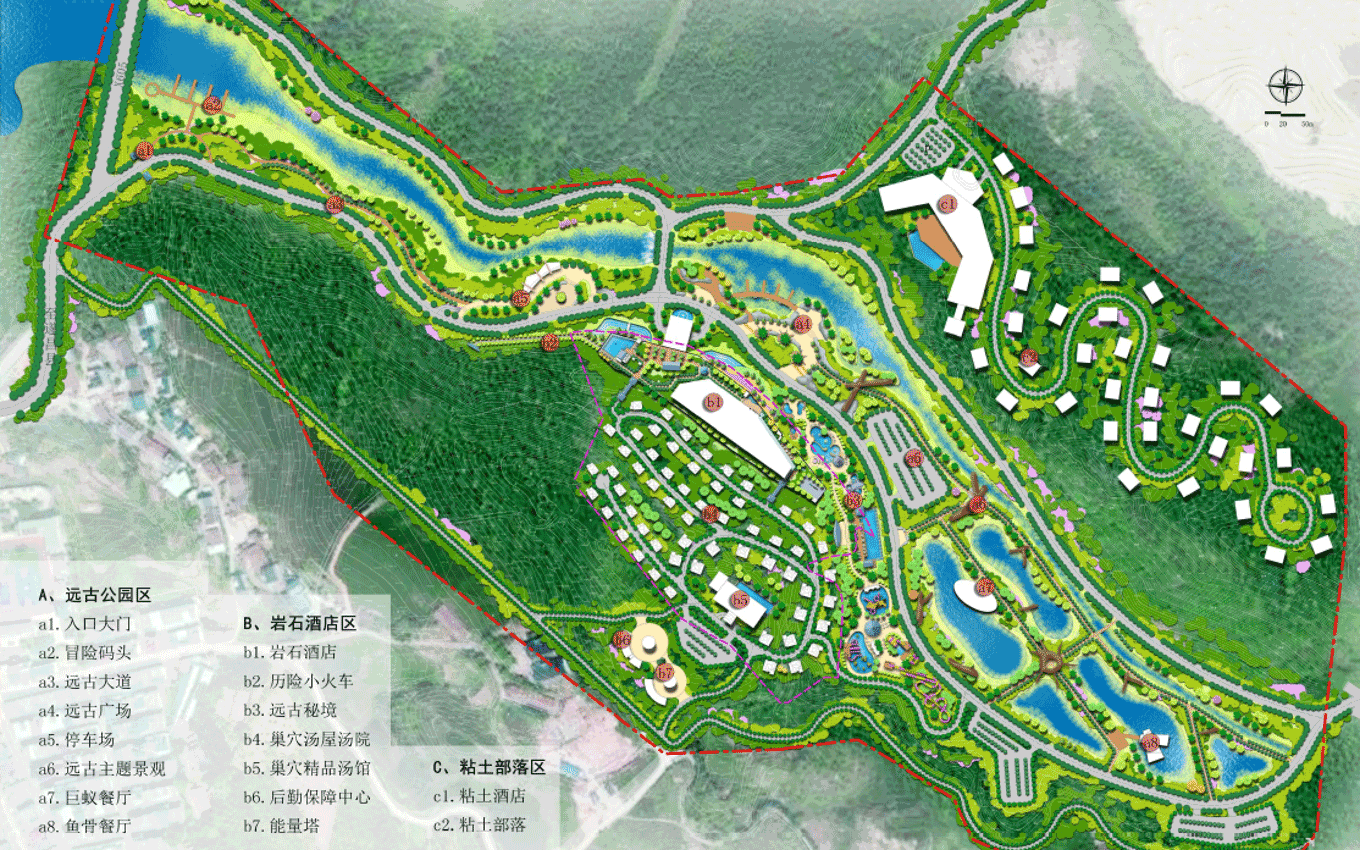 遠(yuǎn)古公園景區(qū),位于規(guī)劃區(qū)中部,為東西走向的兩山相夾谷地地形東部直接連接605縣道,西部與農(nóng)田相接。絕大部分為原礦山尾水排放區(qū)域,業(yè)主方要求打造成濕地公園遠(yuǎn)古公園度假景區(qū)功能定位,景區(qū)形象展示、停車服務(wù)、休閑公園、污水凈化、主題餐飲。目標(biāo)市場(chǎng)為家庭游和主題游樂客群;策劃理念是利用交通對(duì)接便利的條件,展示地心公園主題形象和主題景觀,配建停車、餐飲等配套服務(wù)功能,遠(yuǎn)古公園以遠(yuǎn)古濕地為形態(tài),以遠(yuǎn)古荒蕪為景觀風(fēng)格,實(shí)現(xiàn)遠(yuǎn)古公園與地心公園整體風(fēng)格的協(xié)調(diào)統(tǒng)一。