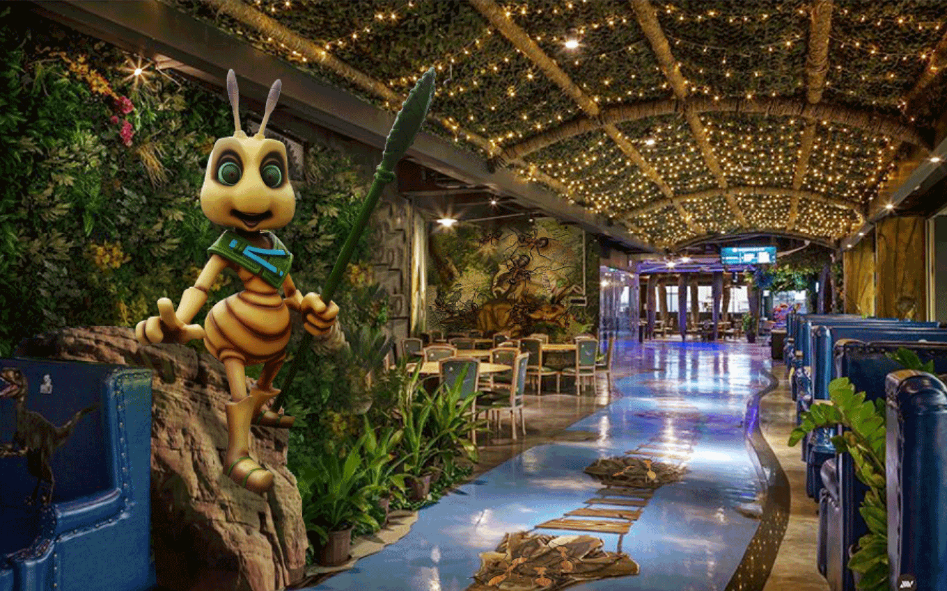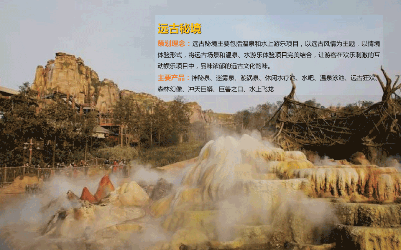 度假溫泉度假區(qū)入口大門/遠(yuǎn)古大道/遠(yuǎn)古廣場(chǎng)/遠(yuǎn)古主題景觀圍繞地心文化主題,提取巨型動(dòng)物化石、枯樹木、獸骨、蛛網(wǎng)、石堆、龍蛋及主題故事線中IP形象等元素進(jìn)行主題包裝,營(yíng)造遠(yuǎn)古時(shí)期原始、神秘、荒蕪的主題場(chǎng)景,激發(fā)游客的好奇心,快速進(jìn)入設(shè)定的的主題故事中。