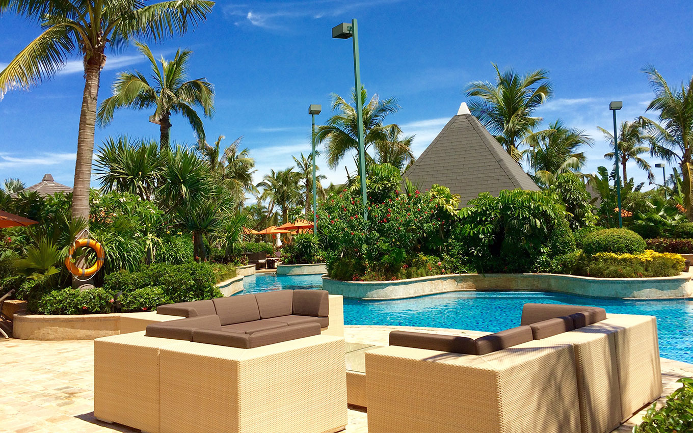 The Shangri-La Hotel, Haikou is located in the resort center of Haikou City. The natural beauty of the sea, the scenery of the coastline, and the tranquility of the coconut breeze. This is a Haikou holiday paradise. The logo design of the Shangri-La Hotel, Haikou is based on the ocean and the scenery of the coconut trees in Haikou. Bronze is used to create a holiday guide design under the sun, and the interior is made of sand and stone carving and lace, combined with the embellishment of metal texture, forming a distinct sense of quality.