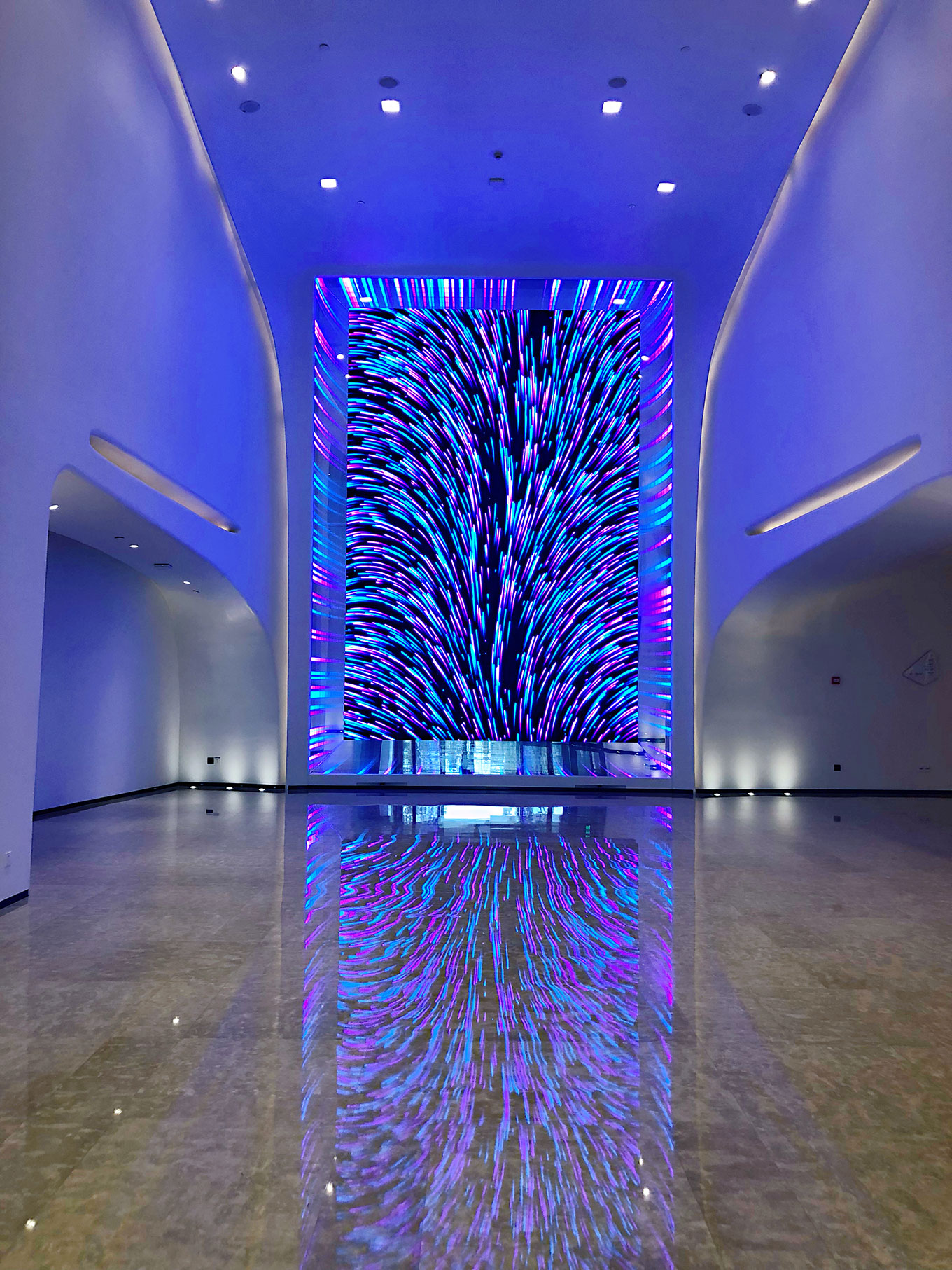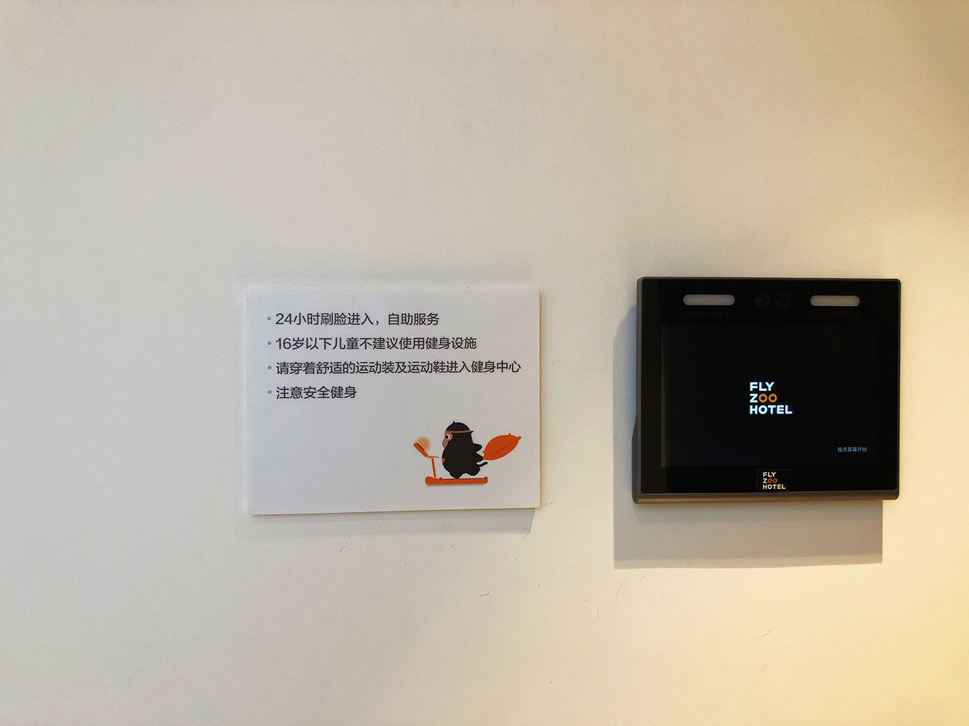 在這里能感覺到進(jìn)入菲住布渴酒店大堂,設(shè)計(jì)未來感十足,進(jìn)入大堂即有電子顯示的標(biāo)識,人和時代標(biāo)識公司把阿里橙色在標(biāo)識設(shè)計(jì)中的應(yīng)用,簡結(jié)的標(biāo)識及立體字。并配有自助機(jī)就開始進(jìn)行人臉識別。阿里方面就聲稱菲住布渴是全球第一家支持全場景刷臉的酒店。在整個入住體驗(yàn)中鈦媒體也發(fā)現(xiàn),包括電梯、房間、餐廳、健身房、酒吧等多個場景內(nèi)都有人臉識別科技的應(yīng)用。