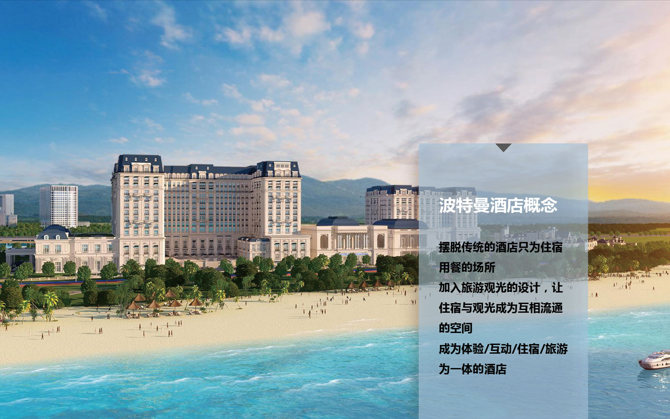 法蘭西經典皇室風情之濱海酒店,擺脫傳統的酒店只為住宿用餐的場所加入旅游觀光的設計,讓住宿與觀光成為互相流通的空間,成為體驗/互動/住宿/旅游為一體的酒店。