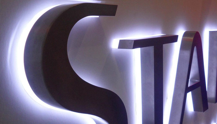 我們通常在做指引的時(shí)候,上面不是見到有一些發(fā)光字嗎?那些發(fā)光字就是用亞克力雕刻成一個(gè)立體的字,亞克力標(biāo)識(shí)然后襯托在不銹鋼板上,在背后再定一個(gè)LeD的發(fā)光燈,這樣亞克力就能透光出來了。不過這個(gè)時(shí)候的亞克力需要處理一下,可以我們不要直接用白色的亞克力,我們可以在上面做一些磨砂的處理,這樣效果會(huì)看起來更高檔?;蛘呶覀儾捎靡环N叫做黑白版的亞克力材料,他在白天的時(shí)候是黑色在晚上的時(shí)候,它可以透光出來就變成白色了,這也是一種很好的材料選擇。