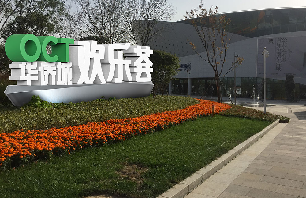 濟南華僑城歡樂薈樓體字設計及制作,標識牌的設計與制作。濟南華僑城歡樂薈開業活動。